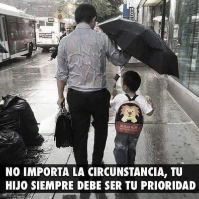 «Dibuje un hombre bajo la lluvia»; es la consigna de un test psicológico que evalúa los mecanismos de defensa de un individuo frente a las presiones ambientales. Pero «un papá bajo la lluvia cubriendo con su paraguas a su hijo», ¡qué dibujo tan genial! Todos las fuerzas de papá protegiendo a su hijito, aunque él quedé expuesto a las inclemencias del tiempo.