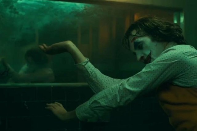 Después del triple crimen, Arthur corre asustado por lo que acaba de realizar, atraviesa un callejón con gente durmiendo en la calle hasta esconderse en una especie de baño público. Allí se produce el acto fundamental: sucede un fenómeno místico, aquí se encuentra la clave. El personaje ingresa en un estado de trance a través de una danza que le reconduce la energía hacia el sí mismo, tras ello, al mirarse al espejo puede ver sobre sí a otro: el Joker.